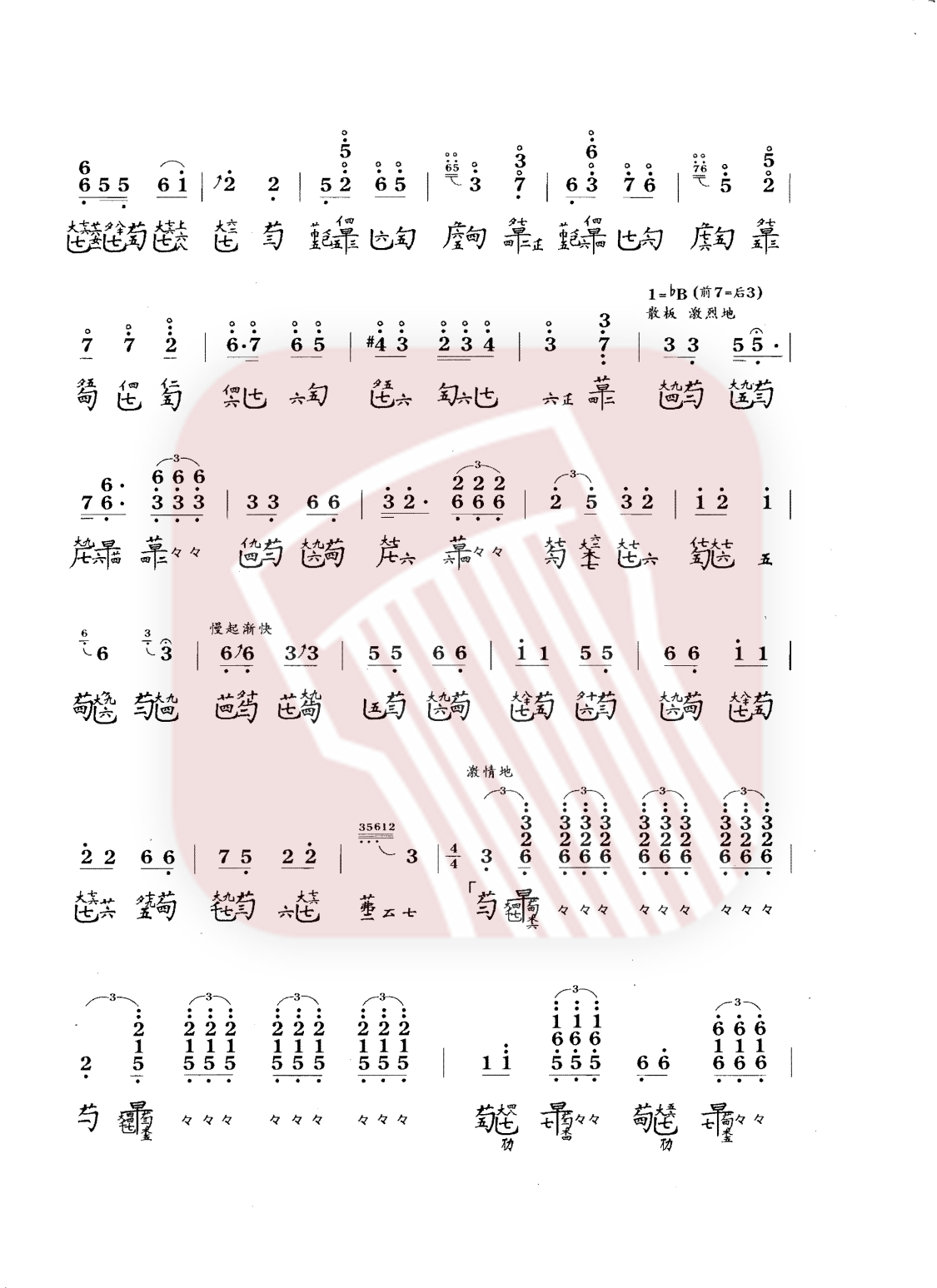 调: 紧五弦(降B调)