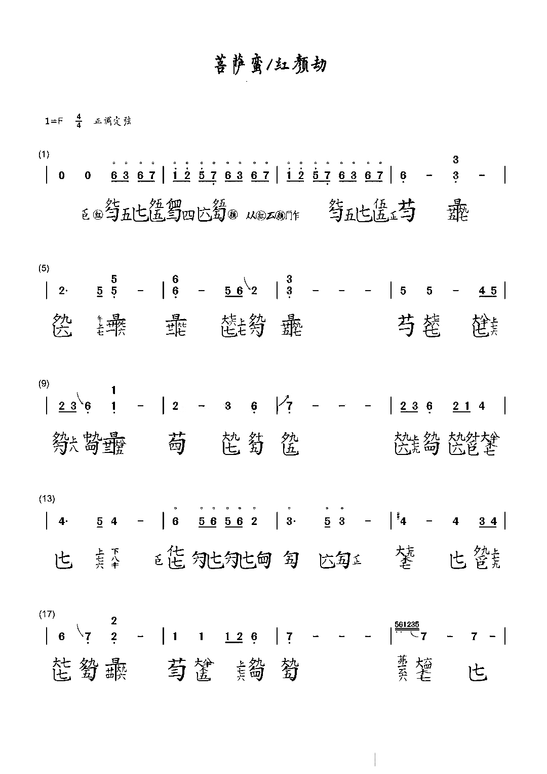 查看对应的古琴谱
